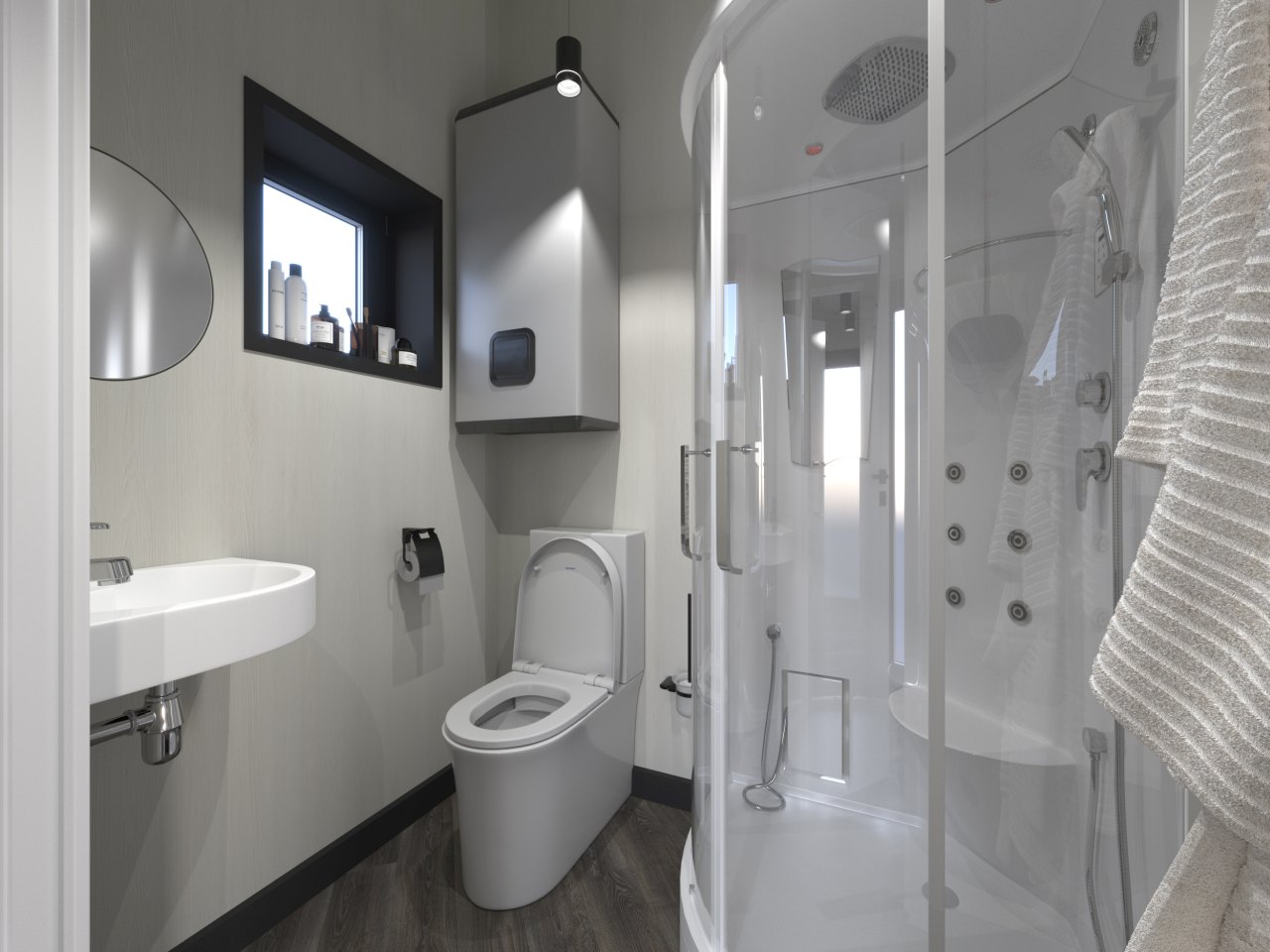 Классический одноэтажный дом с двускатной крышей, выполненный в белом цвете или под дерево «золотой дуб», станет настоящим украшением загородного участка. В комплект поставки входит теплый контур дома и стальная дверь. Остальные элементы устанавливаются опционально, исходя из потребностей клиента.